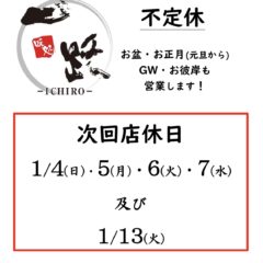 お盆明け、お正月明け、GW明け、等で店休を入れる予定ですが、通常時は変わらず無休で営業しております。